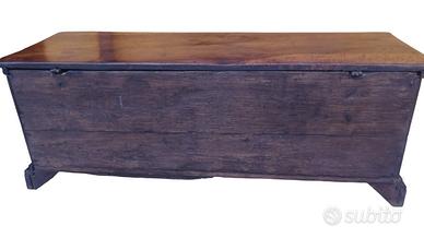 La cassapanca è impreziosita da specchiatura anteriore e laterale, con proporzioni armoniose e lavorazione tipica della produzione emiliana del periodo.
