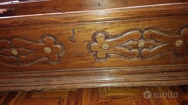 Stupenda cassapanca epoca 700 scolpita in noce con i piedi di leone.