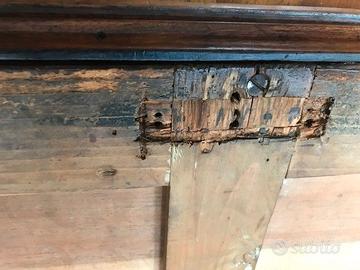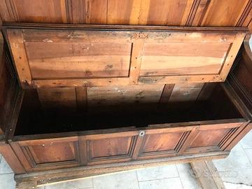 Vendo questa cassapanca antica in legno di noce nazionale, epoca "Direttorio" circa fine 1700. L'oggetto è privo della bugnatura ai lati, molto probabilmente incastonato in una nicchia e altresì della serratura coeva. L'oggetto è in buone condizioni, ma richiede un restauro conservativo.