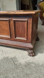 cassapanca in noce fine 600 con stemma torre e gambe da leone. falegnameria ok. restauro di manutenzione misure 173 x 57 x 55h