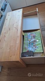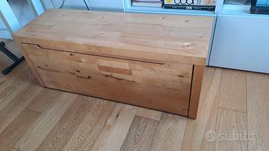 cassapanca Ikea, lungh 112 x alt 45 x prof 38, colore legno naturale, con cassettone interno scorrevole estraibile