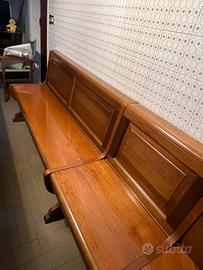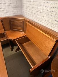 Cassapanca in legno ad angolo con tavolo e sedie
