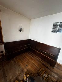 Vendo cassapanca in legno ad angolo misura virca 2 metri x 2 metri ottima per tavernetta casa in montagna ecc Prezzo 80€