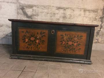 Cassapanca in legno con decorazioni