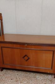 Vendo cassapanca in legno praticamente nuova nessun graffio come si vede dalle foto di colore noce, si può chiudere anche con una chiave. Le misure sono lunghezza 1,20 x 0,60 di profondità molto comoda per metterci ogni cosa da vestiti a giocattoli. Non faccio spedizioni non rispondo ad email per info 348610326. Prezzo affare!!
