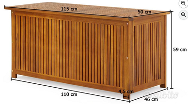 Cassapanca salva spazio da giardino e da interni . Personalmente l'ho utilizzata in una stanza all'interno della casa , per cui è come nuova . Ho venduto la casa dov'era ubicata e ora nella mia, dove vivo, non ho spazio.