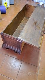 Cassapanca in legno degli anni 70/80 tenuta benissimo. Misure : Lunghezza 130 cm Larghezza 42 cm Altezza 49 cm No perditempo,non spedizione, consegna e pagamento solo di persona.