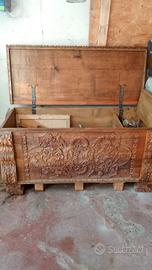 Vendo cassapanca in legno di noce antico intagliata a mano. Con serratura e chiave. Condizioni PERFETTE. Accetto offerte.