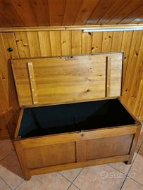 Vendo cassapanca in legno massello, solida e funzionale, ideale come contenitore per coperte, giochi, scarpe o attrezzi.