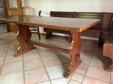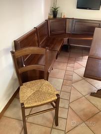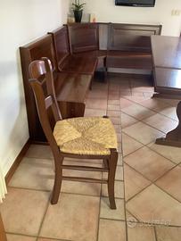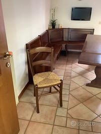 Cassapanca ( 215 x 140 ) in legno massiccio con cassetti richiudibili, tavolo ( 160 x 90 ) con prolunga ( 40 cm ) , 4 sedie impagliate PREZZO TRATTABILE