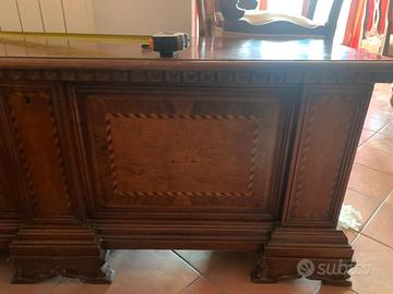 cassapanca in legno con intarsi misure 158*48*61. Ripiano da rivedere per superficie scolorita in un punto come da foto