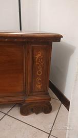 Vendo cassapanca in legno massello con decorazioni intarsiate.