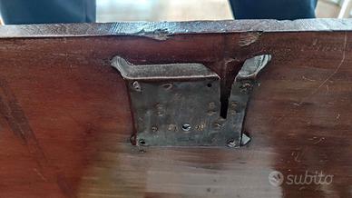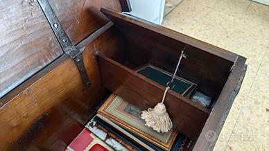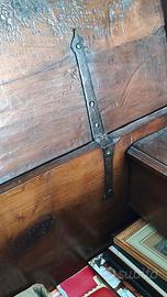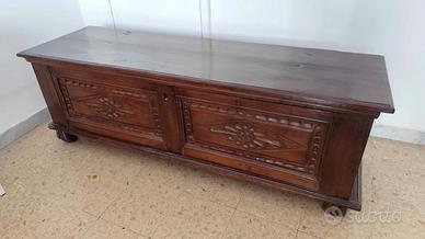 Autentica, in noce massello e in ottimo stato, restaurata nel suo stato corservativo. Cerniere e chiave originali in ferro battuto forgiate a mano. Poggia su piedi originali, scolpiti a zampa di leone, perfettamente coerenti con l'epoca del mobile. Quindi oltre ad un valore estetico, anche storico. Da notare lo schienale che e' in tavola unica e di forte spessore (2.5 cm. come tutto il resto del mobile) caratteristica costruttiva tipica delle manifatture settecentesche, Serratura coeva. Mobile nato come contenitore domestico, oggi perfetto come elemento di arredo di grande carattere, anche in ambienti contemporanei. Oltre al consolidamento strutturale, che ha dato la corretta stabilita', e' stata fatta la finitura a ceralacca. Misure larghezza 153 cm. profondita' 47 cm. altezza 52 cm.