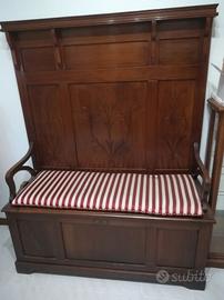 cassapanca tenuta molto bene,intarsiata a mano