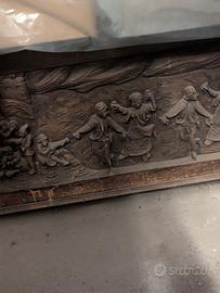 cassapanca antica in legno interamente intarsiata, da restaurare.max serietà no perditempo TRATTABILE
