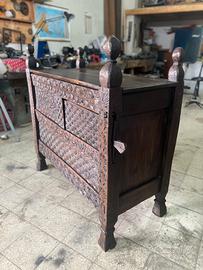 dalla valle dello swat. 1700 circa, in legno massello, totalmente intagliato a mano. Lavorazione ricca, sistema di apertura laterale e superiore. pezzo unico tradizionale artigianale. originale con leggero restauro conservativo.