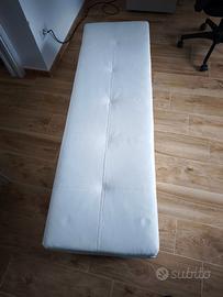 Vendo panca contenitore in ecopelle bianca in perfette condizioni. La seduta è trapuntata e si alza per rivelare un vano portaoggetti molto capiente e pulito, perfetto per coperte, borse o scarpe. La base è sostenuta da robusti piedini in legno nero. Struttura solida e rivestimento in finta pelle molto pratico da pulire. Dimensioni esatte: 140 cm (Lunghezza) x 43 cm (Profondità) x 48 cm (Altezza). Prezzo: 80 € (leggermente trattabile). Solo ritiro a mano in zona Roma (Aurelia/Battistini), non effettuo spedizioni viste le dimensioni. Contattatemi tramite chat per altre foto o dettagli.