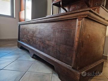 Cassapanca in castagno restaurata risalente all'incirca alla metà degli anni '40, possiede 6 piedini da appoggio e all'interno è molto capiente. Possiede giunture e chiusura in ferro stile medievale.