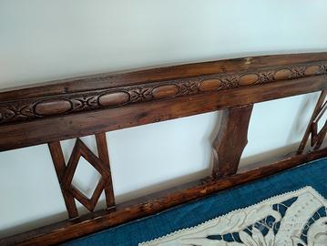 Cassapanca di legno intarsiato, originale primi del 900.