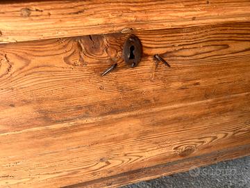 Cassapanca in legno massello, solida e dal fascino rustico.