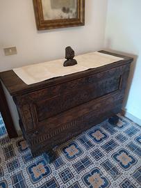Bellissima cassa sarda epoca metà 1800 proveniente da proprietà di famiglia probabile origine Sinnai-Meana Sardo consegna a mano su Cagliari
