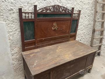 •Funzione mista: cassapanca contenitore con schienale decorativo, probabilmente usata in ingressi o camere da letto.