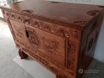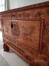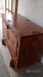 Cassapanca stile Sardo,aventi le misure di base:124 larghezza 87 altezza 53 profondità,in legno massello.Sgubiata manualmente ,per maggiori informazioni chiamare il 3485201105 Massimo .