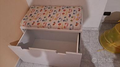 Cassapanca STUVA IKEA. Completa di cassettone. Misure 90 x 51x 49 Colore bianco con rivestimento in carta. Materassino disponibile a 5€