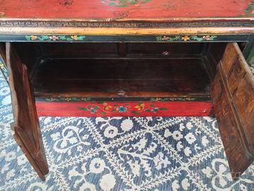 Manufatto completamente in legno massello e dipinto a mano, misure: 120x45x50, due antine.