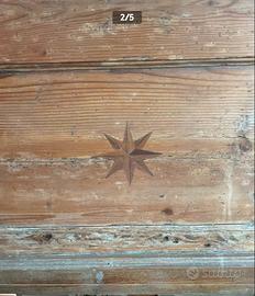 Cassapanca trentina in legno metà 800 con stella intagliata, di grandi dimensioni