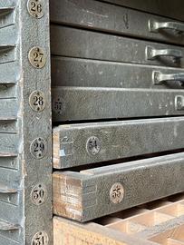 Vecchia azienda Tipografica, vende 100 autentiche casse tipografiche degli anni '80 con il loro bancone originale. Un'occasione imperdibile per collezionisti, creativi e amanti del fascino industriale. Immergiti nella storia della stampa con questo lotto eccezionale, perfetto per arredamento unico, progetti artistici o per preservare un'arte antica.