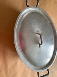 Casseruola in alluminio con coperchio h 13, prof 23,lunghezza 32