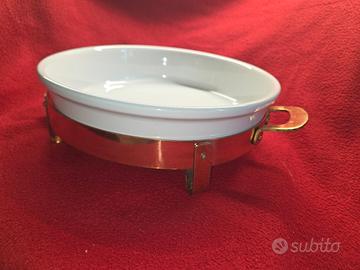 Casseruola in ceramica con supporto in rame e ottone in ottimo stato i pezzi sono due volendo li vendo anche singolarmente