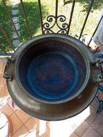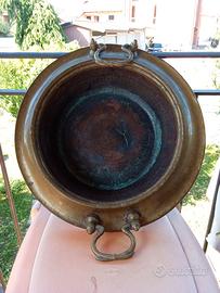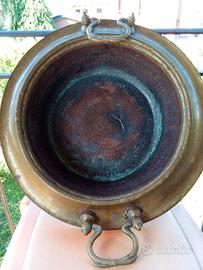 Casseruola di forma cilindrica completa di manici, in RAME lavorato e martellato a mano dalla mia famiglia operai e callalari in puglia anno 1970