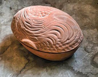 Casseruola in terracotta completa di coperchio. Parte superiore decorara come da foto