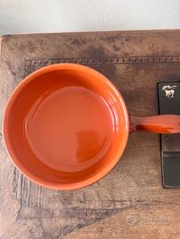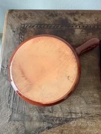 Vendo per liberare spazio,casseruola classica in terracotta smaltata, diametro 19 cm e altezza 8 cm. È la misura più versatile per la cucina tradizionale, perfetta per cotture lente come sughi, stufati, legumi o cereali. La pentola è integra, senza crepe o sbeccature. Lo smalto interno è pulito e lucido. Il fondo esterno è già "temprato" dal calore, pronto all'uso. Diametro 19 cm e altezza esterna 8 cm