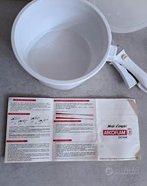 Casseruola pirofila ARCOFLAM® con manico rimovibile e coperchio. Condizioni: 10/10 NUOVO, mai usato Dimensioni: Ø17 cm circa, peso 1,4kg circa Il vetro ceramico non rilascia sostanze tossiche se riscaldato, non è poroso, non contiene metalli pesanti, né nichel/cromo, non assorbe odori o sapori dai cibi e non è reattivo ai cibi acidi. Sono adatti a qualsiasi tipo di piano cottura a gas, elettrico e vetroceramica (eccetto induzione), per forni e microonde