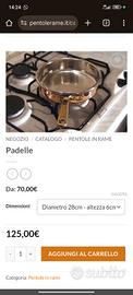 vendo casseruola rame d. 28.cm h 6 cm con un manico Rino Gasperini nuova mai usata