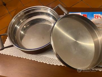casseruola da 24 cm in acciaio inox 18/10, con fondo termodiffusore per una migliore distribuzione del calore, molto utile per chi non intende cucinare, mettendo in contatto i cibi con materiali plastici o chimici.