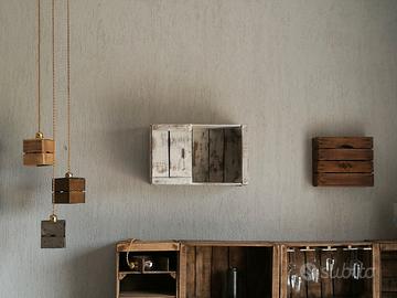 Cassetta con divisorio e sportellino calamitato realizzata con legno di recupero delle vecchie casse della frutta anni 80.