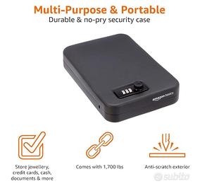 Amazon Basics, Cassetta di sicurezza portatile, con serratura a combinazione, per documenti e gioielli, formato XL, nero.