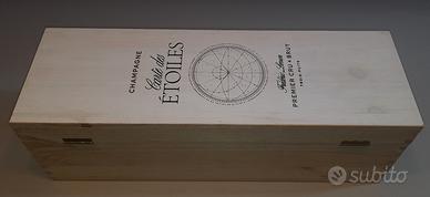 Splendida confezione/cassetta in legno originale per bottiglia Champagne Carte des Étoiles – Premier Cru Brut.