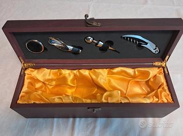 cassetta in legno luxuri porta bottiglia di vino, ( non compresa) con accessori per una perfetta degustazione. ideale per un regalo elegante e funzionale