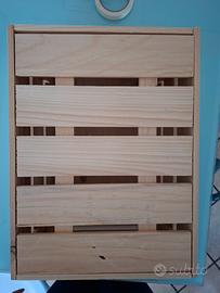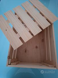 cassetta in legno grezzo con coperchio, rettangolo di base esterno cm 30 X 40, altezza cm 25. condizioni ottime