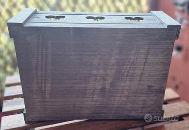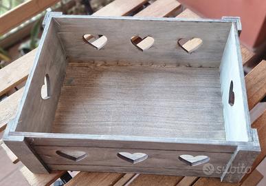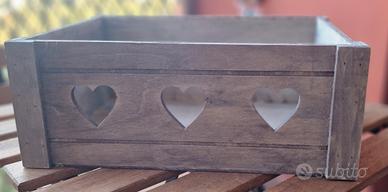 La cassetta presenta cuori traforati su tutti i lati, che la rendono ideale non solo come pratico contenitore, ma anche come elemento d'arredo o base per originali confezioni regalo e bomboniere.