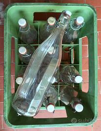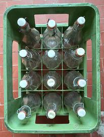 Cassetta in plastica con 12 bottiglie da 1 litro (vuote) con chiusura ermetica usate ORIGINALE – da ripulire, guarnizioni da revisionare, vedi foto ritiro a Offagna o a richiesta ad Ancona