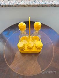 Vendo set di dispenser porta condimenti per cucina in particolare per olio, aceto, sale, pepe e stuzzicadenti. Nuovissimo, in quanto mai utilizzato.
