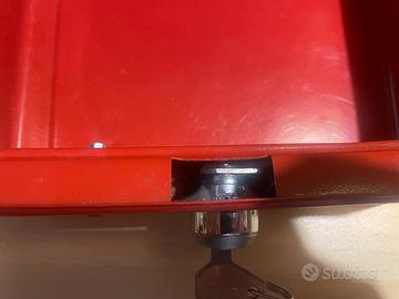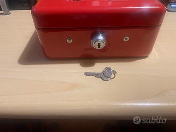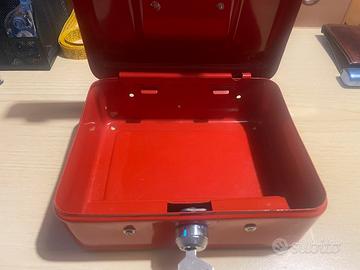 Cassetta portadenaro o gioielli. Colore rosso Presenti dei fori per il fissaggio al muro o armadi. 1 chiave