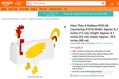 Cassetta postale "AEREO" acquistata negli Stati Uniti negli anni 90 dai miei genitori e mai utilizzata. Marca MORE THAN A MAILBOX originale.