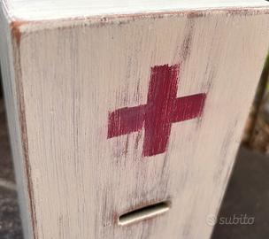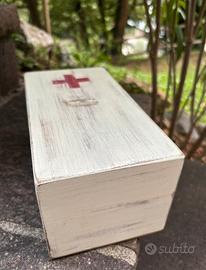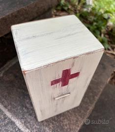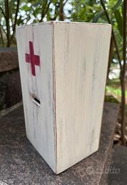 Cassetta offerte in legno, anni '50 del '900, proveniente da struttura per anziani gestita da suore. Dimensioni: H 22,8 × L 12 x P 10,4 cm circa. Ottime condizioni, molto ben tenuta.